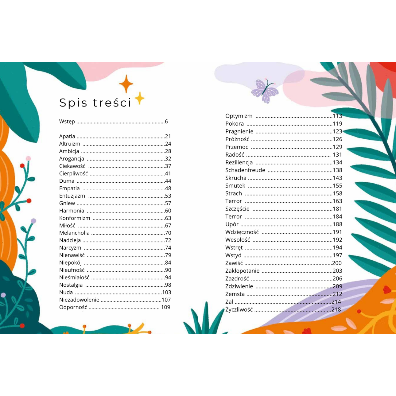 Dzięki tej książce Twoje dziecko zyska umiejętność nazwania tego, co czuje, dzięki czemu łatwiej zrozumie siebie i innych. Pozna pełen wachlarz aż 50 emocji, uczuć i stanów ducha, które autorzy przystępnie opowiedzieli, nawiązując do bohaterów literackich oraz cytatów ze znanych dzieł. Rozwijając umiejętność nazywania emocji, wzmocni swoją pewność siebie, lepiej poradzi sobie w szkolnych i domowych sytuacjach. Zbuduje trwalsze, bardziej świadome relacje.